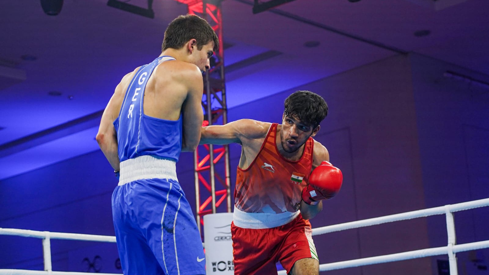 Boxer Abhinash Jamwal in action during Boxing World Cup. (BFI)