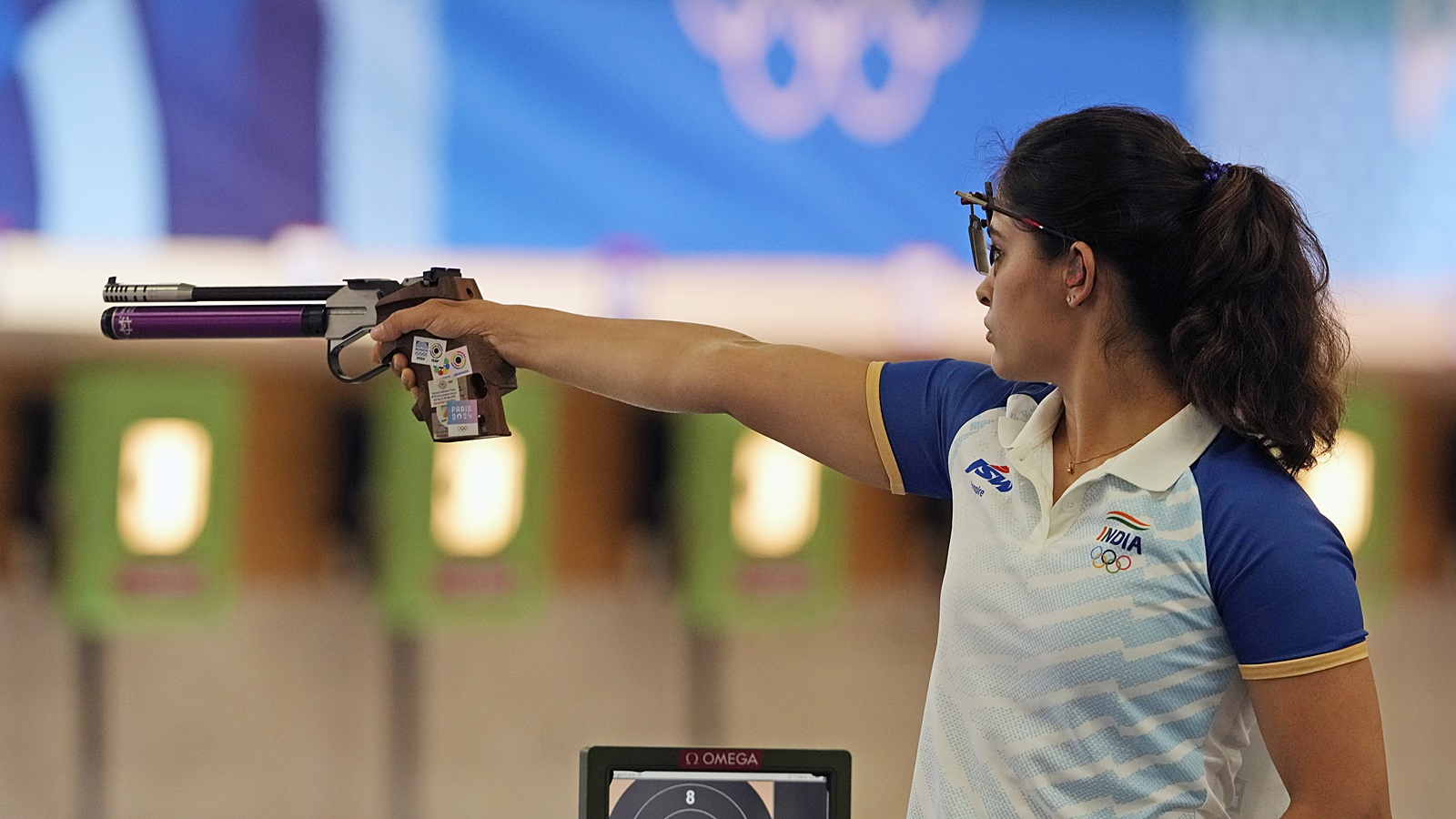 FILE PHOTO: Indian shooter Manu Bhaker in action. (PHOTO: AP)