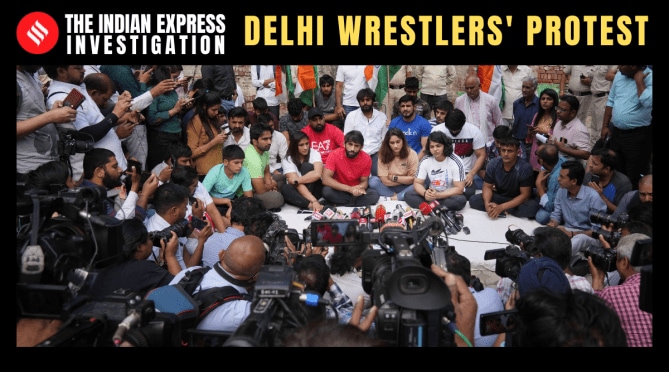 Wrestlers Protest in Delhi Live: Wrestlers Sakshi Malik, Vinesh Phogat and Bajrang Punia started the protest on Wednesday. (Photo: Praveen Khanna)