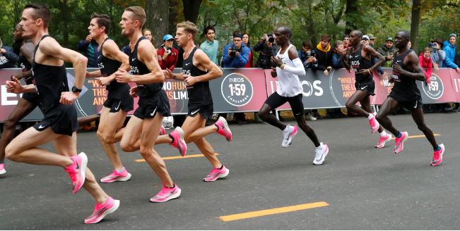 Kenyan legend Eluid Kipchoge broke the two-hour marathon barrier in Vienna using Nike’s Vaporfly batch of shoes, sparking controversy. (File)