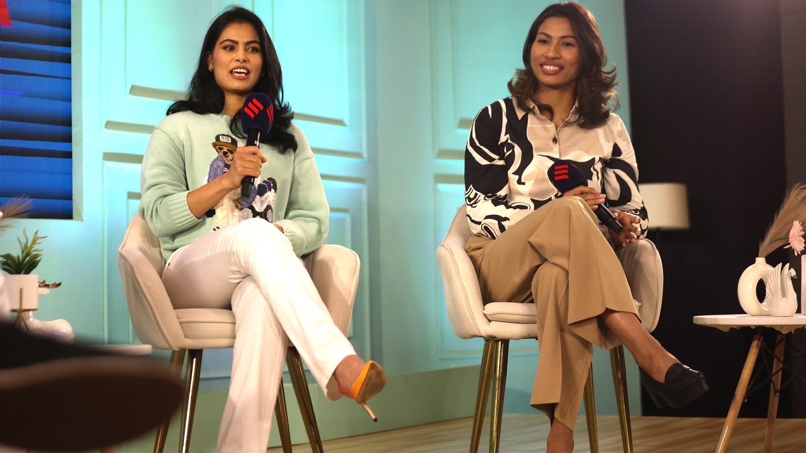 Olympians Manu Bhaker and Lovlina Borgohain at the Express Adda in New Delhi on Saturday. Tashi Tobgyal