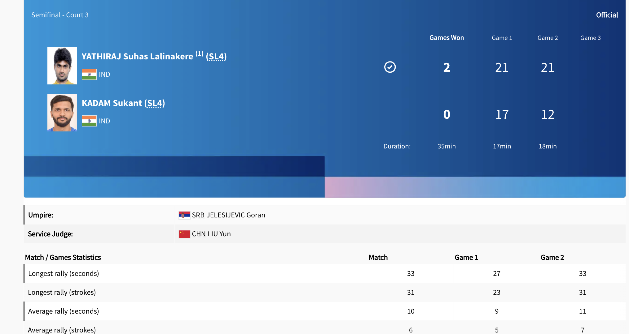 India at Paris 2024 Paralympic Games Highlights: On an action-packed Sunday at Paris Paralympics, India won their 6th and 7th medals of the Games. Sprinter Preethi Pal added the 200m T35 bronze to the one she won in 100m earlier. Later, Nishad Kumar made it back-to-back silver medals as he repeated his feat from Tokyo by finishing 2nd in the men's high jump T47. Three more medals were confirmed in Para Badminton. Suhas Yathiraj defeated Sukant Kadam 21-17, 21-12 in the Men's Singles SL4 Semifinal. While Kadam will play for bronze, Yathiraj competes in the Men's Singles SL4 final. Meanwhile, in the Men's Singles SL3 semi-final, India's Nitesh Kumar beat Daisuke Fujihara 21-16, 21-12 in the semis. Earlier in the day, Manisha Ramadass had set up an-all Indian semifinal against her teammate Thulasimathi Murugesan, assuring India's first female medallist in para badminton at the Paralympics. It was Thulasi who won the match, prevailing 23-21 21-17.In SH6, Nithya Sre Sumathy Sivan defeated Poland's Oliwia Szmigiel in the Quarterfinal but later lost the semifinal against China's Lin. Nithya will now try and clinch the bronze. In para archery, there was heartbreak as Rakesh Kumar finished fourth on a day some of some really solid shooting. He reached the semi-final of the men's individual event after surviving a nail-biting shoot-off against Canada's Kyle Tremblay. He then lost out to China's Ai Xinliang in the semis and then the bronze medal match against He Zihao. There was to be no shooting final though. Avani Lekhara, Sidhartha Babu missed out on a spot in the Mixed 10m Air Rifle Prone SH1 while Sriharsha too missed out in his event. Scroll down below for Day 4 recap at the Paris Paralympics