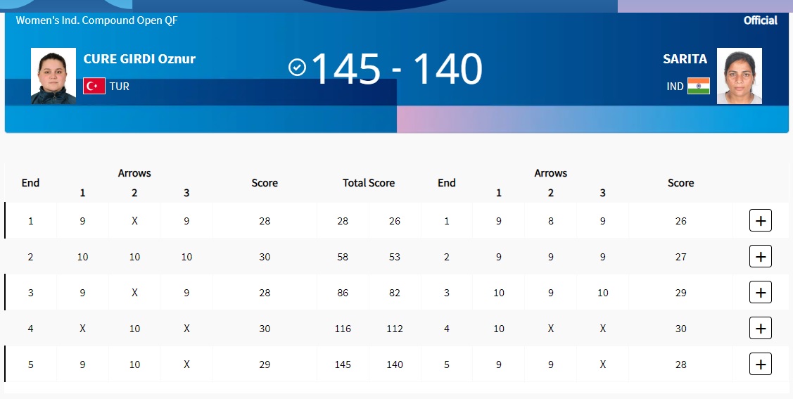 So Sarita Kumari follows Sheetal Devi. Both Indian archers eliminated.