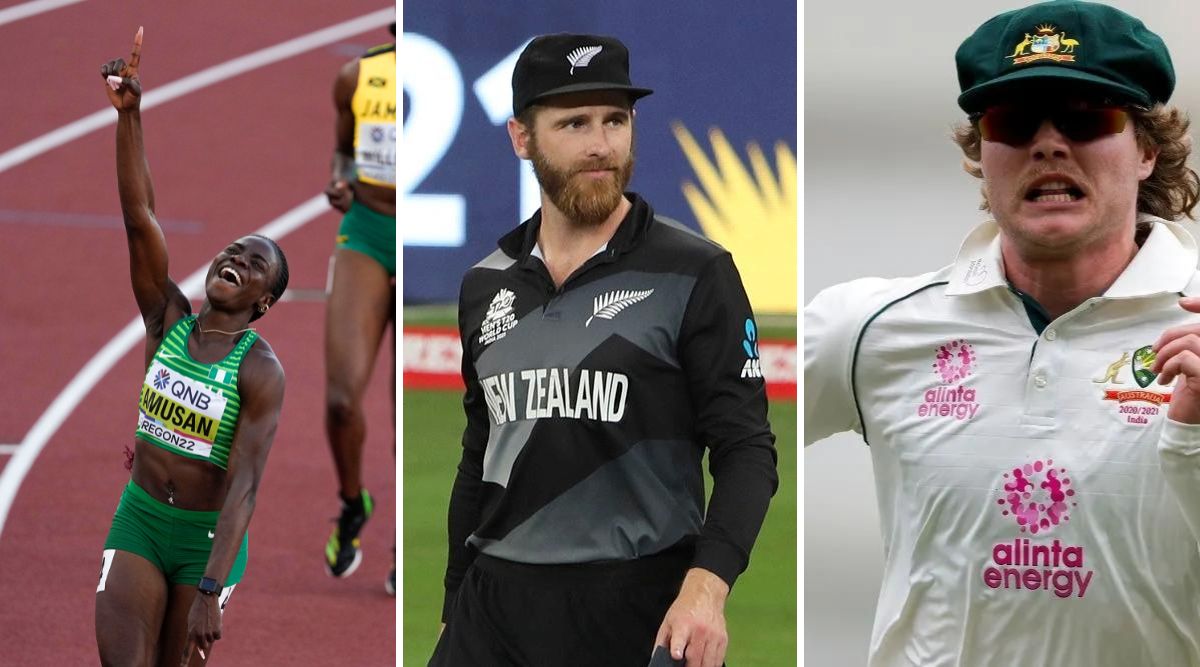Tobi Amusan, of Nigeria, reacts after winning the women's 100-meter hurdles final; New Zealand skipper Kane Williamson returns to white ball fold, Australia's Will Pucovski to train at MRF Academy in Chennai. (AP & File Photos)
