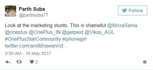 Indian Tennis player Sania Mirza posted a promotional tweet on Wednesday about the smartphone One Plus 3T.