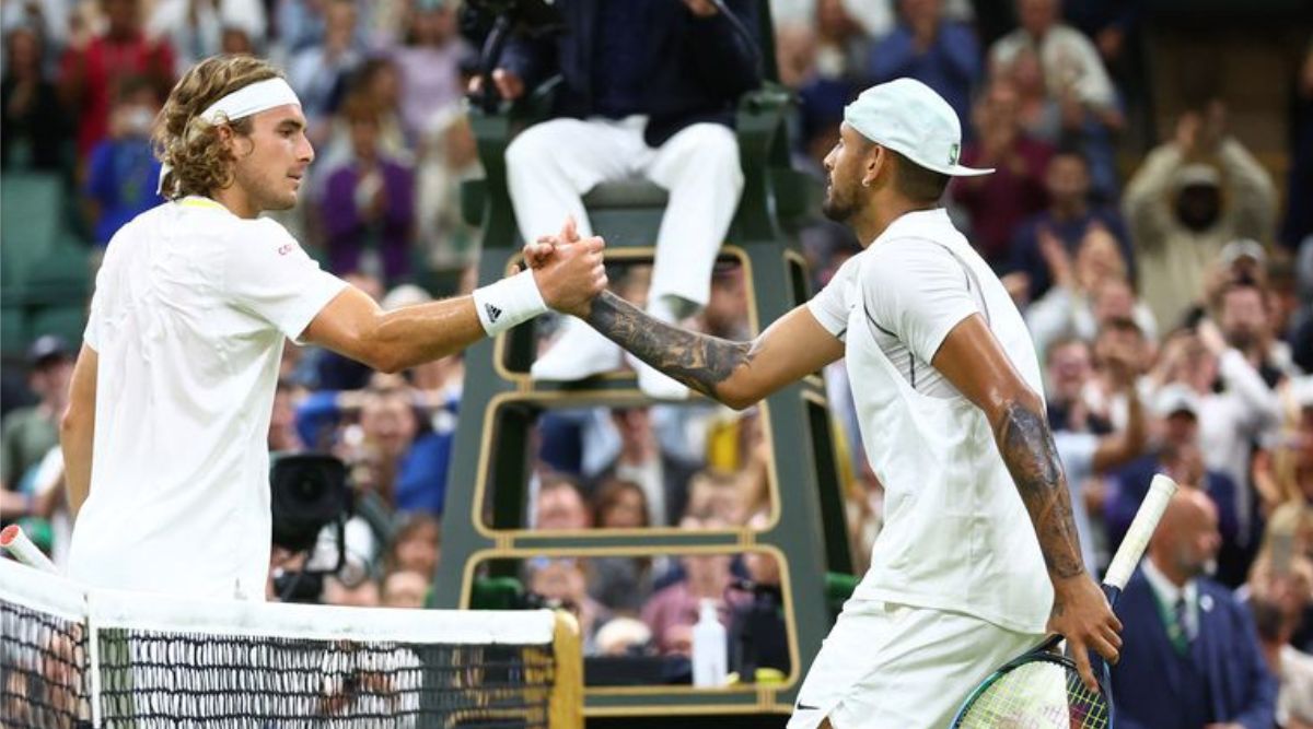 Stefanos Tsitsipas vs Nick Kyrgios: 𝙏𝙝𝙚 𝙃𝙖𝙣𝙙𝙨𝙝𝙖𝙠𝙚 𝘾𝙪𝙩#Wimbledon pic.twitter.com/ySHotqt9fI