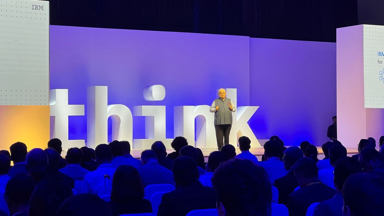 Sandip Patel, managing director, IBM India & South Asia, speaking at the IBM Think Mumbai 2024 event. (Express Photo)
