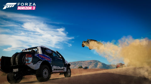 If you thought Forza Horizon 2 offered a vast selection of terrain to thrash around in, wait till you’re seated in a Chevrolet Camaro Super Sport, with the controller equivalent of “pedal-to-the-metal” zipping through the Australian outback. While many of the environmental zones in Forza Horizon 2 felt homogeneous, the environment in Horizon 3 is sure to blow your mind. The light changes with the terrain, with a softer glow emanating from the scene if you’re driving in the thick forest cover and takes on a subtle orange shade if you’re out in the desert because that’s what happens when light bounces off the red-orange soil.