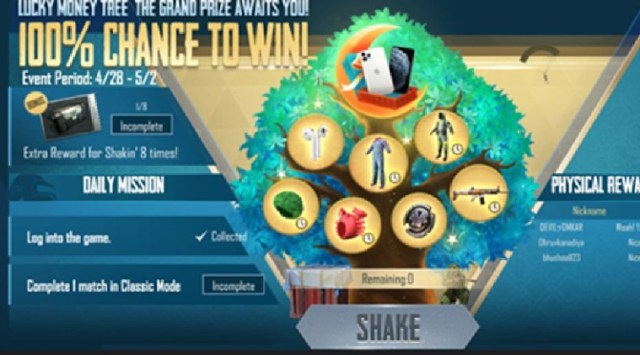 PUBG Mobile Lucky Money Tree event also offers the players a chance to win a special in-game skin for shaking the tree eight times. To get this skin, players will have to shake the tree two times for four days during the event.