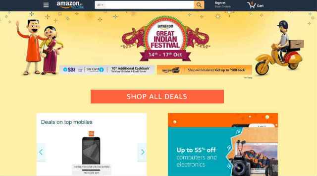 Amazon Great Indian Festival is now live, and the e-commerce platform has listed deals on products across categories such as mobiles, electronics, fashion, lifestyle, and more. People who shop using SBI debit and credit cards will get 10 per cent additional cashback, and those who pay via Amazon pay balance will get up to Rs 500 cash back. Amazon Prime membership is available at Rs 499. Smartphones including those from Apple, Xiaomi, OnePlus, etc are listed under a host of discounts, exchange offers, and more. Amazon Great Indian Festival sale Apple deals Apple iPhone 7 (32GB) gets 22 per cent off, and it is listed for Rs 37,999. The 128GB variant is available for Rs 49,999 (14 per cent off), and 256GB option can be bough at Rs 57,988 (22 per cent off). Apple iPhone 7 is listed in Silver, Black, Jet Black, Gold, and Rose Gold colour variants. Promotional offers include 10 per cent (maximum up to Rs 500) cash back when shopping with Amazon pay Balance, up to 120 GB additional data from Idea, and no cost EMI. Apple iPhone 6 (16GB) is available at Rs 30,380 as it gets 42 per cent off. The 32GB variant of iPhone 6 can be bought at Rs 22,999 (22 per cent off). Colour options include Gold and Space Grey. Apple iPhone SE (16GB) gets 36 per cent off and is available at Rs 24,804. The 32GB variant gets 35 per cent off and it is selling for Rs 16,999. Colour options listed include Silver, Gold, Rose Gold, and Space Grey. Amazon Great Indian Festival sale Xiaomi deals Amazon will be hosting Xiaomi Redmi 4 sale at 12 PM today. The 16GB variant of the smartphone costs 6,999. Redmi 4 (64GB) gets 14 per cent off and it can be bought at Rs 9,499 instead of Rs 10,999. The 32GB storage option will be available at Rs 8,499. Users will get extra Rs 500 off on exchange and no cost EMI offer is applicable as well. Also Read: Flipkart Big Diwali Sale: Top deals on iPhone 7, Redmi Note 4, Moto G5 Plus and other smartphones Launch offers of Redmi 4 include additional 30GB 4G data from reliance Jio, free subscription of Hungama Music for 12 months, Hungama Play for three months, Rs 200 promotion credit for Kindle books, and damage protection plan starting at Rs 599. Xiaomi Mi Max 2 (32GB) gets 13 per cent or Rs 2,000 off and it is available for Rs 12,999. The 64GB variant can be bought at Rs 14,999. Users will get extra Rs 1,500 off on purchase of Mi Max 2 (32GB). Other bundled offers include 30GB additional data from reliance Jio and free subscription of Hungama Music. Amazon Great Indian Festival sale OnePlus deals OnePlus 5 gets a host of offers from Vodafone, Cleartrip extra. People will get extra Rs 4,000 off on exchange, and up to Rs 25,000 discount vouchers from Cleartrip. Those who download and sign in to Kindle app will get Rs 500 promotion credit for Kindle eBooks. Vodafone is giving up to 75GB free data and three months of free Vodafone Pay. People can stream their Prime Video app on OnePlus 5 to get Rs 250 as Amazon Pay Balance. OnePlus 5 (64GB) comes in Slate Gray or Soft Gold Colour options at Rs Rs 32,999. The 128GB option comes Slate Gray or Midnight Black colour options at Rs 37,999. OnePlus 3T 64GB variant will be available at Rs 24,999 against the regular Amazon India selling price of Rs 29,999. Customers can avail additional Rs 2,000 on exchange, and Rs 500 eBook promotion credit from Kindle. Vodafone will give 45GB free data for five months. It is available in Gunmetal and Soft Gold colour options. Amazon Great Indian Festival sale Motorola and Lenovo deals Moto G5s Plus can be bought at no cost EMI. People will get extra Rs 1,000 off on exchange. Moto G5s Plus (64GB) can be bought at Rs 15,999 in Lunar Grey or Blush Gold colour variants. Users will get an additional 50GB 4G data from Reliance Jio and up to Rs 300 on eBooks. Amazon is giving Rs 2,000 off on Lenovo K8 Note plus there's an exchange offer as well. The 32Gb storage variant is priced at Rs 10,999 while the 4GB storage option comes at Rs 11,999. The smartphone is available in Venom Black and Fine Gold colour options. Amazon Great Indian Festival sale LG deals LG Q6 gets a massive 24 per cent discount, and the smartphone is selling at Rs 12,990 instead of Rs 16,990. It can be bought in Black, Gold and Platinum colour variants. People will get an extra Rs 3,000 off on exchange, and Jio is offering 50Gb additional 4G data. Nokia 6 from HMD Global is listed at Rs 14,999 as it gets 13 per cent off. Available in Matte Black and Silver colour options, Nokia 6 can be bought at no cost EMI option as well. Amazon prime members will get up to Rs 1,000 off.