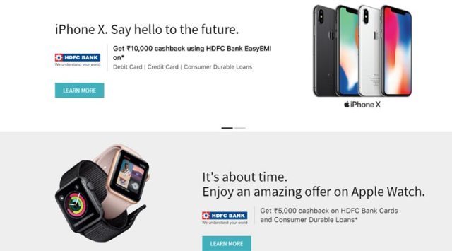 Apple's iPhone, iPad, MacBook Pro and Watch products will come with cashback up to Rs 10,000 for customers who use the HDFC Debit and Credit card to make these purchases. The cashback offer is up to Rs 10,000 in case of the iPhone X and details are currently listed on the iStore India website. iStore is one of the authorised Apple resellers in India and users might not find this offer listed on e-commerce stores like Flipkart, etc. Gadgets360 first reported about the HDFC cashback offers. According to the terms and conditions mentioned on the website, the offer is valid from January 1 to March 11, 2018. It will be applicable on HDFC Bank Credit Card EMI, HDFC Bank Debit Card EMI and HDFC Bank Consumer Durable Loan transactions on purchase of iPhones, MacBook, Apple Watch and iPads. However, this is not valid on HDFC Bank Corporate Cards. The website says the HDFC cashback offer will work on transactions "made using Brand EMI option on Pine Labs terminals for Credit Card EMI and Debit Card EMI." It also adds that if your transaction is eligible for cashback, this will be printed on the charge slip itself, though the actual money might be credit to the account later. According to the iPhone HDFC Bank Cashback Offer, those who buy the Apple iPhone X will get Rs 10,000 as cashback. Apple iPhone 8 and iPhone 8 Plus users will get Rs 7,000 cashback, while iPhone 7 series users will get Rs 3,000 cashback. Apple iPhone 6s and iPhone 6s Plus users will get Rs 2,000 cashback and those who purchase the iPhone 6, iPhone SE and iPhone 5s will get only Rs 1,000 cashback. Coming to the Apple Watch Series 3, HDFC Bank is offering Rs 5,000 cashback and once again the terms and conditions are the same and the offer is valid till March 11, 2018. Coming to the MacBook Pro customers will get Rs 10,000 as cashback on this, if they use a HDFC debit/credit card for purchase. Additionally for Macs with MRP less than 1 lakh, the cashback will be Rs 5000. This includes Macbook Air, Mac Mini and the iMac with 21.5-inch display and 1.6 GHz dual-core processor. According to the terms and conditions, for all Mac models with an MRP greater than 1 lakh, the cashback will be Rs 10,000. Finally coming to the Apple iPad, the company will offer Rs 5,000 as cashback to customers who make the purchase using an HDFC Bank debit and credit card. The HDFC terms and conditions also mention that the cashback shall be credited on or before 90 business days from the date of transaction and it will be limited to a maximum of two transactions per card per category during the offer period. For those who were hoping to buy an Apple iPhone in the New Year, the HDFC Bank cashback offer is a good one, especially on the iPhone X and iPhone 8 series. The Apple Watch cashback offer is also worth considering, since it brings the price down to nearly Rs 24,000.
