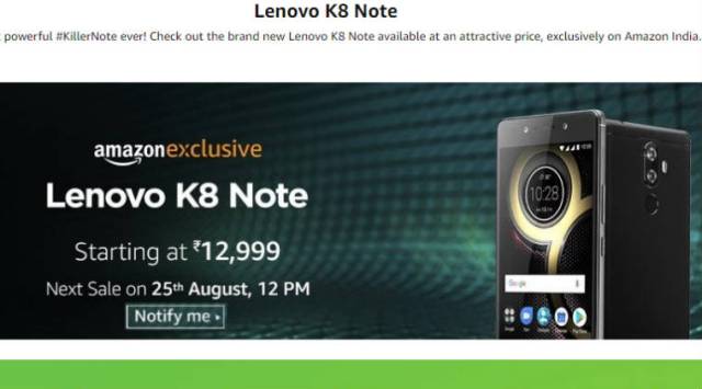 Lenovo K8 Note will be up for sale on Amazon India on August 25 starting 12 PM. First sale for the smartphone was conducted on August 18 on the e-commerce website and Lenovo claims to have sold all units of K8 Note within eight minutes. Amazon reportedly received seven lakh ‘Notify me’ alerts right before the first sale following K8 Note’s launch announcement on August 9.