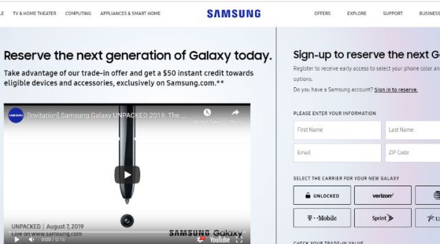Samsung has opened reservations for pre-ordering its 'next generation of Galaxy' smartphone. The reservations will be accepted till 11:59PM ET on August 7, which is when the company is expected to launch its Galaxy Note 10 series. A bigger Galaxy Note 10+ variant with 5G support alongside Galaxy Watch Active 2 are said to be unveiled as well. Those who reserve for Samsung's upcoming phone will need to fill up information such as their first and last name as well as email and ZIP code. The next step would be to either choose a carrier like T-Mobile, Sprint, A&T, Verizon, etc or simply go for the unlocked variant. Samsung Galaxy Note 10 can be reserved with the company's trade-in offer as well. Samsung is offering $50 instant credit for eligible devices and accessories to those who go for the trade-in offer. The credit can be availed on Samsung's site. Flagship smartphones from Samsung, Apple, and Google will be eligible for trade-in. For instance, Samsung Galaxy S7, Galaxy S8, Galaxy S9, Galaxy S10 series as well as Galaxy Note 8 and Galaxy Note 9 can be exchanged. Apple phones include iPhone 6S, iPhone 7, iPhone 8 series along with iPhone X and last year's iPhone XR, iPhone XS, and iPhone XS Max will be eligible. One can also exchange all Google Pixel phones up to Pixel 3 series. Meanwhile, Galaxy Watch Active 2 has been spotted listed on the Federal Communications Commission (FCC) website, suggesting the accessory will also launch on August 7. The images have also been posted on the site, which reveals a design similar to the previous-generation Galaxy Watch Active. It sports a round display with thick bezels. Also read: This two-year old Samsung phone saved lives in a motorboat accident Samsung Galaxy Watch Active 2 is expected to come with touch-sensitive bezels, instead of physical rotating bezels that we saw on the previous watch, which means users should be able to navigate by touching the edge of the screen. More features expected are ECG heart rate tracking and an LTE variant. It could be available in 40mm and 44mm sizes. Samsung Galaxy Watch Active 2 was also leaked in images shared by tipster Evan Blass. The promotional image showed the watch next to Galaxy Note 10+. The watch has a round dial display with a simple analog watch face along with a thick round bezel and the rest of the body has a rose gold finish including the strap.