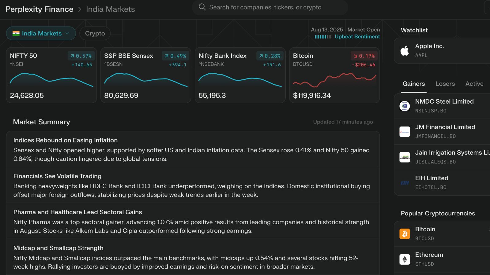 With the India customisations kicking in, Perplexity Finance users in India can “stay caught up on markets, deep-dive on BSE and NSE stocks, and track Indian company earnings”. Grimes said users can search “Reliance stock” or “What’s Tata’s stock price?” to see live stock information in Perplexity answers across desktop, mobile apps, and mobile web. The Perplexity Finance homepage, on desktop and mobile, offers an overview of the markets, links to specific stocks and cryptocurrencies, the ability to view company financials and historical data, and the ability to track company earnings.
