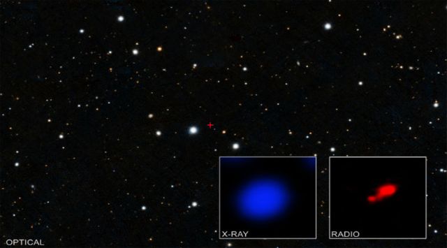 The astronomers have claimed the clocked black hole at only 6 per cent of the current age of the universe. Credits: X-ray: NASA/CXO/Pontificia Universidad Catolica de Chile/F. Vito; Radio: ALMA (ESO/NAOJ/NRAO); optical: Pan-STARRS