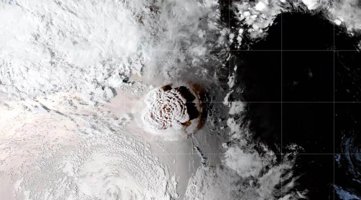 A satellite image capturing the Hunga Tonga eruption on January 15. (Image credit: NASA)