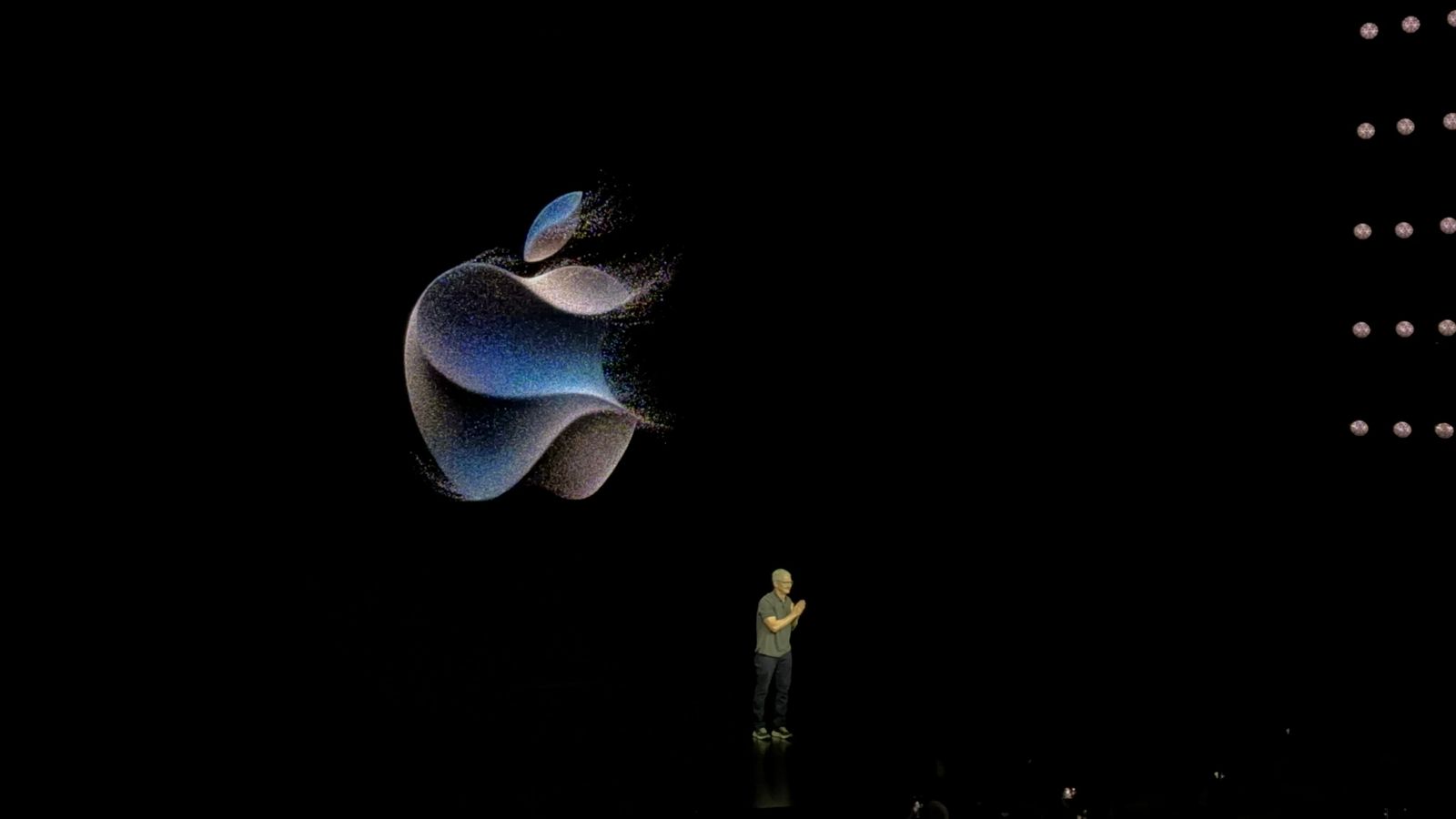 We are all set inside Steve Jobs Theatre. The keynote will start any minute. A lot of it is expected to be pre-recorded as it has been in the past few years since Covid. Most of the guests are seated with Green and Yellow lanyads separating media from Apple's guests. The theatre has a capacity of about 500 people and there is not an empty seat to be found.