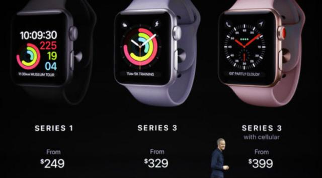 The new Apple Watch Series 3, distinguished by a red crown, comes out Friday starting at about $400. You can forgo cellular, and the red crown, for $70 less. Or get a first-generation model, without GPS, for about $250.