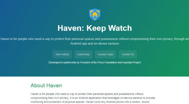 “Haven,” currently available in public beta version, is an Android application that leverages on-device sensors to provide monitoring and protection of physical spaces. The app turns any Android phone into a motion, sound, vibration and light detector, watching for unexpected guests and unwanted intruders.