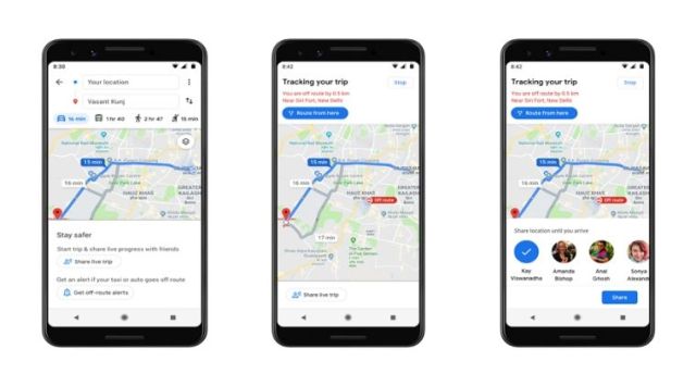 In case the taxi driver or the autorickshaw driver deviates more than 0.5 kms from the suggested route by Google Maps app, then the phone will start buzzing with a prominent notification. When the users click on that notification, they will be able to check their current location and compare it with the originally suggested route. After this, the users can also opt to share their active trip with family and friends right from that screen to keep them updated about the whereabouts.