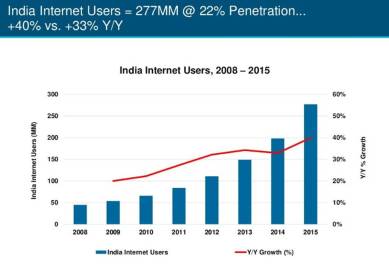 India now has 277 million Internet users surpassing the US and second only to China, says the report. Despite this, just about 22 per cent of the Indian market is penetrated, offering scope for huge growth, particularly on mobile.