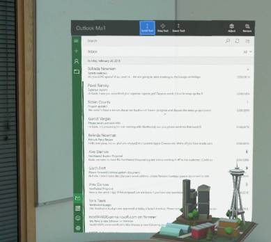 In a blog post, Microsoft says Outlook on HoloLens delivers a familiar experience to users who are already using the apps on Windows 10 PCs, tablets and phones.