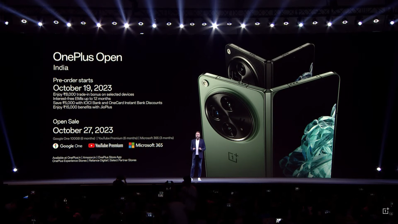 The OnePlus Open is priced at Rs 1,39,999 for the 16GB RAM and 512GB storage variant. Pre-orders start from October 19 while open sale kicks off from October 27.
