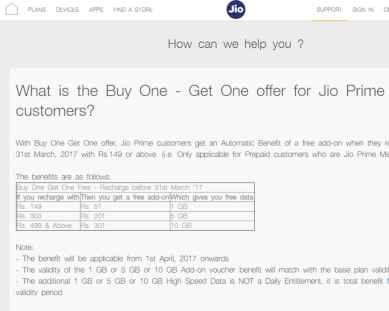 Reliance Jio has announced its ‘Buy One Get One’ offer, which gives Jio Prime prepaid users additional free data benefits at recharge of Rs 149, Rs 303 and Rs 499 & above. Jio Prime members will get an automatic benefit of free add-on of 1GB, 5GB and 10GB data respectively if they recharge before March 31.