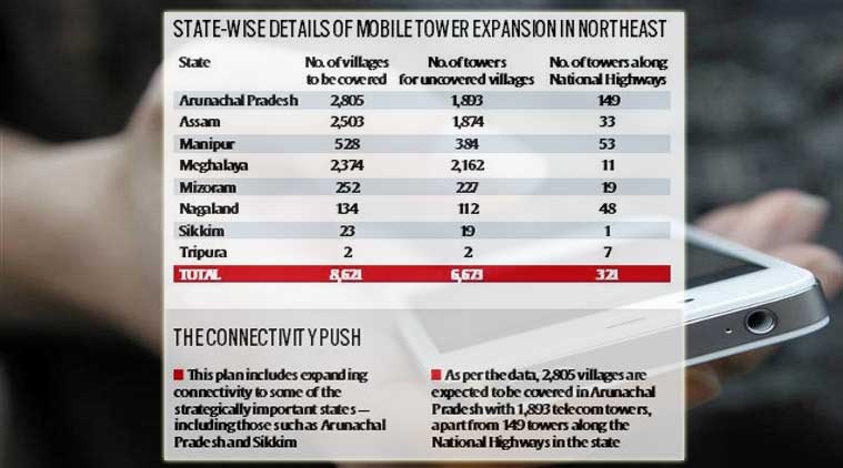 This plan includes expanding connectivity to some of the strategically important states — including those such as Arunachal Pradesh and Sikkim that share borders with China. “Comprehensive Telecom Development Plan (CTDP) for the Northeastern region envisages to provide mobile coverage to 8,621 identified uncovered villages by installation of about 6,673 mobile towers and installation of 321 mobile tower sites along National Highways. To cover these uncovered villages, the location is to be decided after survey by Universal Service Provider,” according to information furnished by the DoT in Parliament.