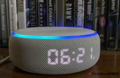 Amazon Echo Dot with Clock review: The new clock makes it easy to see the time, without having to interact with Alexa. (Image credit: Anuj Bhatia/Indian Express)