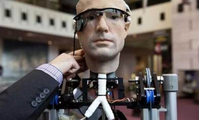 His “brain” can mimic certain functions of the human brain and he has a retinal prosthesis,made by Second Sight in Sylmar,California,which can restore limited sight in blind people. He also sports a cochlear implant,speech recognition and speech production systems.