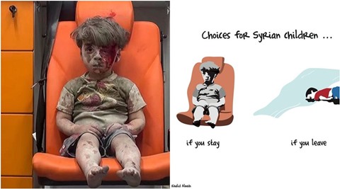 #Khartoon – Choices #OmranDaqneesh 5 pulled from under the ruins, #AylanKurdi 3 drowned in the Mediterranean #Syria pic.twitter.com/Y4XQgfKgHt