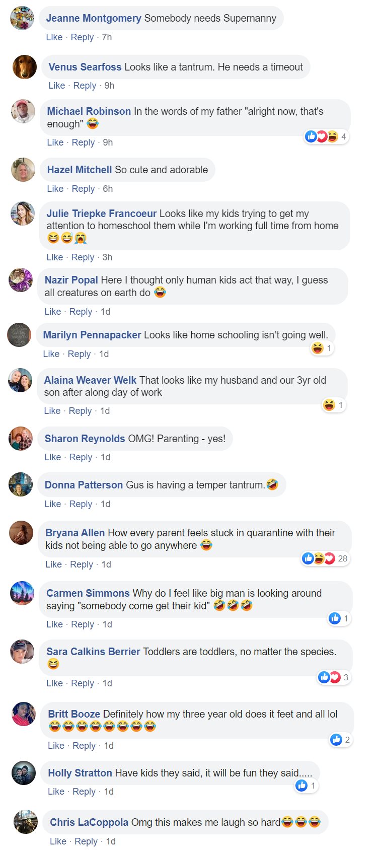 Little Gus trying to play with his father while he seems too tired, has struck a chord with many parents online. (Fort Worth Zoo/ Facebook)