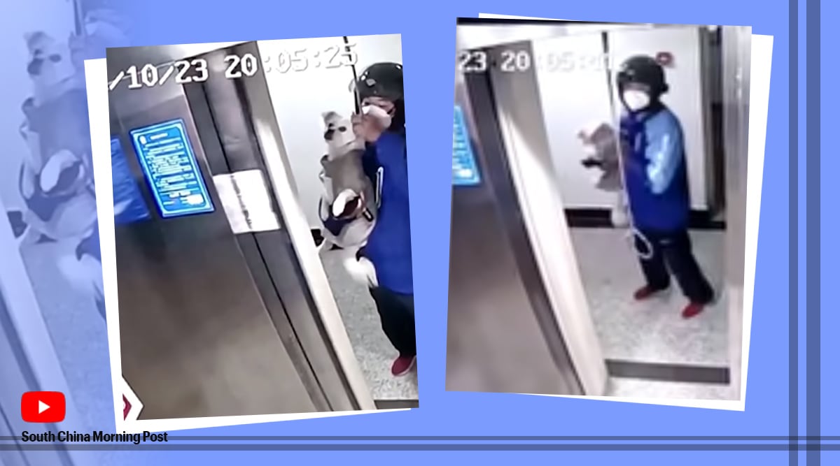 A delivery driver’s quick thinking saved a dog’s life in China after its leash got stuck in an elevator.