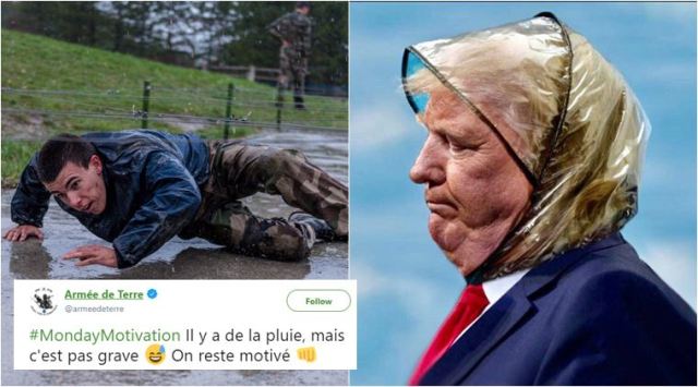While many were angered by Trump’s decision and alleged that he had “dishonoured” fallen US servicemen, others trolled him. Leading the list is the French Army, who may have roasted the US President with a tweet from its official handle. “There’s rain, but it’s not serious. We’re staying motivated,” they tweeted with a rain-soaked soldier crawling under a hurdle.