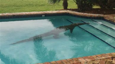 Monroe County Sheriff’s Office spokeswoman Becky Herrin says an Islamorada homeowner called about 7:30 a.m. Thursday to report the croc in his pool. A photo provided by the sheriff’s office shows the large reptile floating languidly in the shallow end of the pool. Herrin said the animal was about 8 feet (2.4 meters) long.