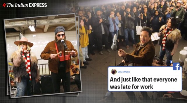 Two people donning a cowboy hat, sunglasses and a beanie and leather coat respectively and singing Christmas carols in front of a busy New York City subway would normally not evoke much of an interest from commuters rushing to work. However, much to the surprise of the passengers, the duo turned out to be The Tonight Show host Jimmy Fallon and singer Alanis Morissette in disguise. Initially, the unsuspecting commuters did not pay much attention to their impromptu jig. However, when they removed their disguise, it caused quite a stir among passengers. The host and the musician performed to "Little Drummer Boy" and "You Oughta Know" at the station. ALSO READ | Jimmy Fallon performs duet with robot Sophia and people are flipping online! The video of their performance, which was uploaded by the show's official Facebook page, featured Morissette wearing a blonde wig, sunglasses and a cowboy hat while Fallon put on a fake beard, a beanie while performing. The duo was accompanied by a band that included a drummer and guitarist. Watch the video here: Once shared online, it did not take long for the video to go viral and be flooded with comments. "And just like that everyone was late for work," wrote a user while commenting on the viral clip.