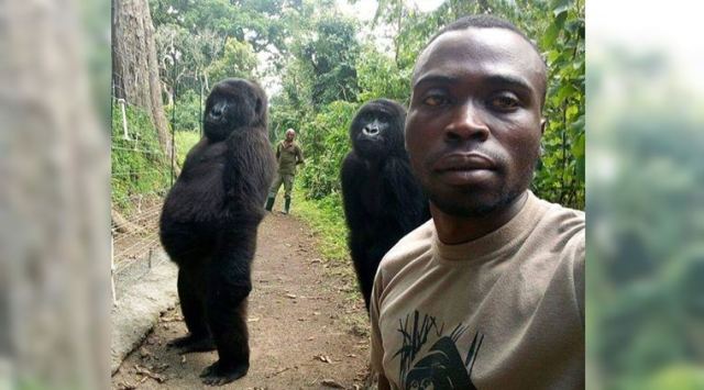 A selfie taken by a ranger with two gorillas has taken the internet by storm. It was just “another day at the office” for a park ranger in the Democratic Republic of Congo, who snapped a selfie with two “posing” gorillas. In a selfie clicked by Mathieu and Patrick, who belong to the elite anti-poaching units and are combat trackers, the primates were seen standing on two feet and looking directly at the camera, in a manner that seemed very comfortable despite the presence of human beings. As the picture went viral on Facebook with over 22,000 shares, many said it was stunning and amazing. Others said it may be be fake or doctored. The picture taken at Virunga National Park features two female gorillas, identified as Ndakazi and Ndeze. The national park's Instagram handle explained that the two gorillas were both orphaned at a very young age and were raised by caretakers at the at the Senkwekwe Centre for Gorilla Orphans. As a result, the two gorillas were at ease with the staff. "YES, it's real! Those gorilla gals are always acting cheeky so this was the perfect shot of their true personalities! Also, it's no surprise to see these girls on their two feet either—most primates are comfortable walking upright (bipedalism) for short bursts of time," the park wrote in the post. The park's deputy director, Innocent Mburanumwe told BBC the gorillas had learned to imitate their caretakers, who have looked after them since they were less than four-months-old. According to Mburanumwe, they see the park rangers as their parents because the gorillas' mothers were both killed in 2007. However, the work at the park is not all fun and games. According to the park's website, around one-third of the world's endangered mountain gorillas reside in Virunga National Park, and rangers at the park have been targeted in the past. Five rangers were killed in the park last year in an ambush by suspected rebels, and more than 130 park rangers have been killed in Virunga since 1996.