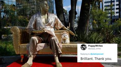 As Hollywood prepares for the Academy Awards aka Oscars 2018, a massive golden couch has created a huge buzz online. Days before the grand night, when the biggest stars will walk away with their golden trophies in hand, someone placed a “casting couch” near the venue with the statue of Harvey Weinstein seated on it. A bathrobe-swaddled Weinstein figure, sitting arms spread on a golden chaise lounge has been set on the sidewalk of Hollywood Boulevard that is now a big hit among tourists.