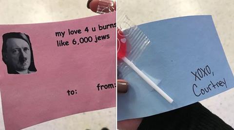 At Central Michigan University, in Mount Pleasant, USA, a student Madison Rodriguez Eberth spotted a ‘Valentine’s card’ that read “my love 4 u burns like 6,000 jews” with a picture of Hitler on it recently. She posted pictures of the card on the Internet, which then spread like wildfire. Reportedly, the card was given to a member of the Organization of Women Leaders.