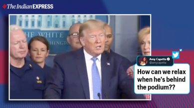 US President Donald Trump attempted to quell the panic which has set in amid the coronavirus outbreak and addressed a press briefing Sunday at the White House in which he urged people to stop hoarding groceries and other supplies, in view of the outbreak. But it wasn’t so much the message, but how he said it that caused people to take to social media to criticise him.