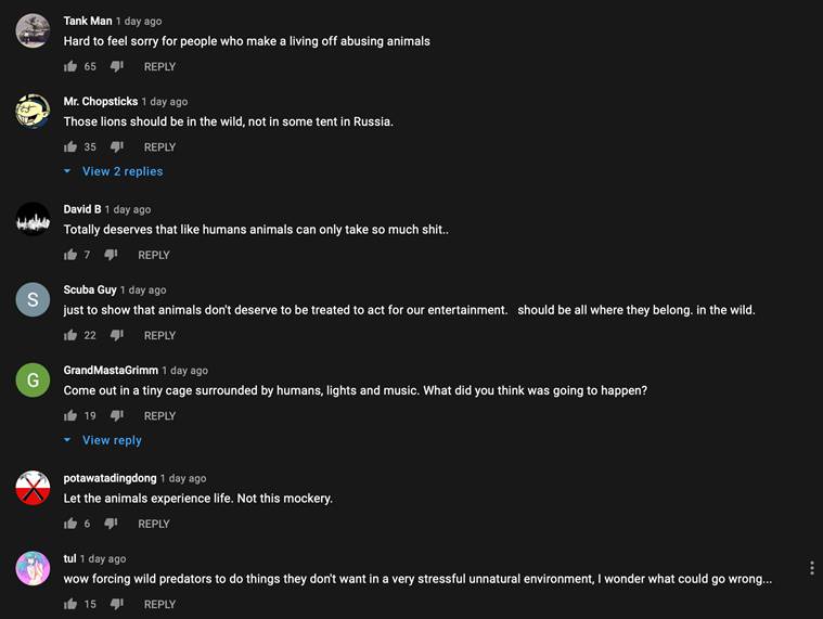 The trainer, after being bandaged, said that such cases are very rare, but animals are animals. He also assured that the lioness would not perform again after the attack. The incident led to calls for a ban on the use of animals in circuses. Many in the comments section criticised the circus for animal abuse.