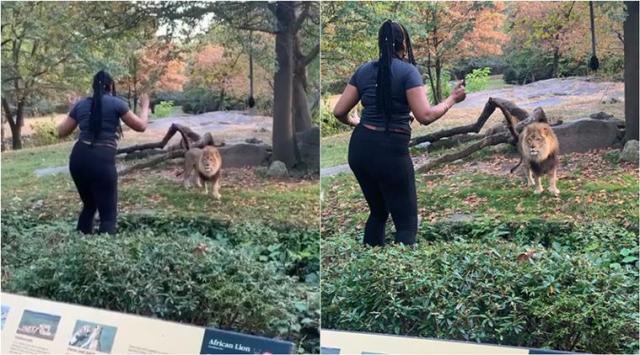 In a brazen act, a woman breached the safety barrier at a zoo and entered into a lion’s enclosure. The incident, which was recorded by Instagram user Real Sobrino, took place in New York’s Bronx Zoo where the unidentified woman was seen gesturing in front of the lion even as the feline stared on. The footage was captured on camera by an onlooker who shared it on Instagram and the clip quickly went viral.