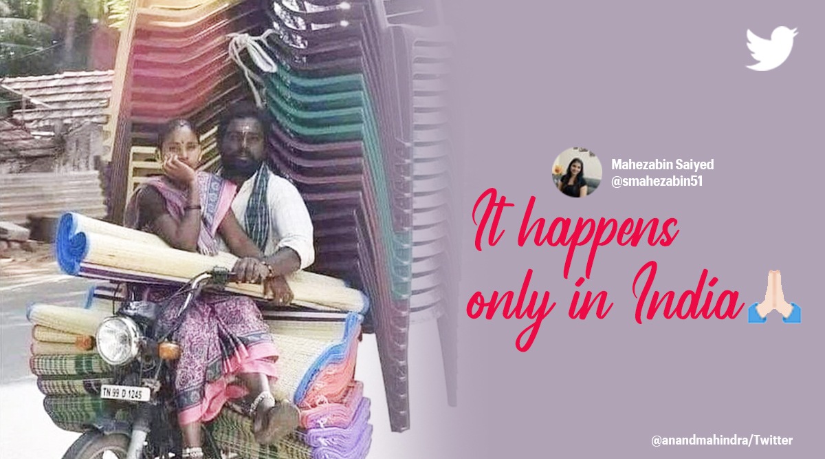 In the post, Mahindra shares a photo in which a couple can be seen riding a bike with a load of chairs and mats stacked and stuffed over the two-wheeler. Mahindra captioned tweeted, “Now you know why India makes the most two-wheelers in the world. We know how to carry the highest volume of cargo per square inch of wheel…We are like that only… #Sunday”