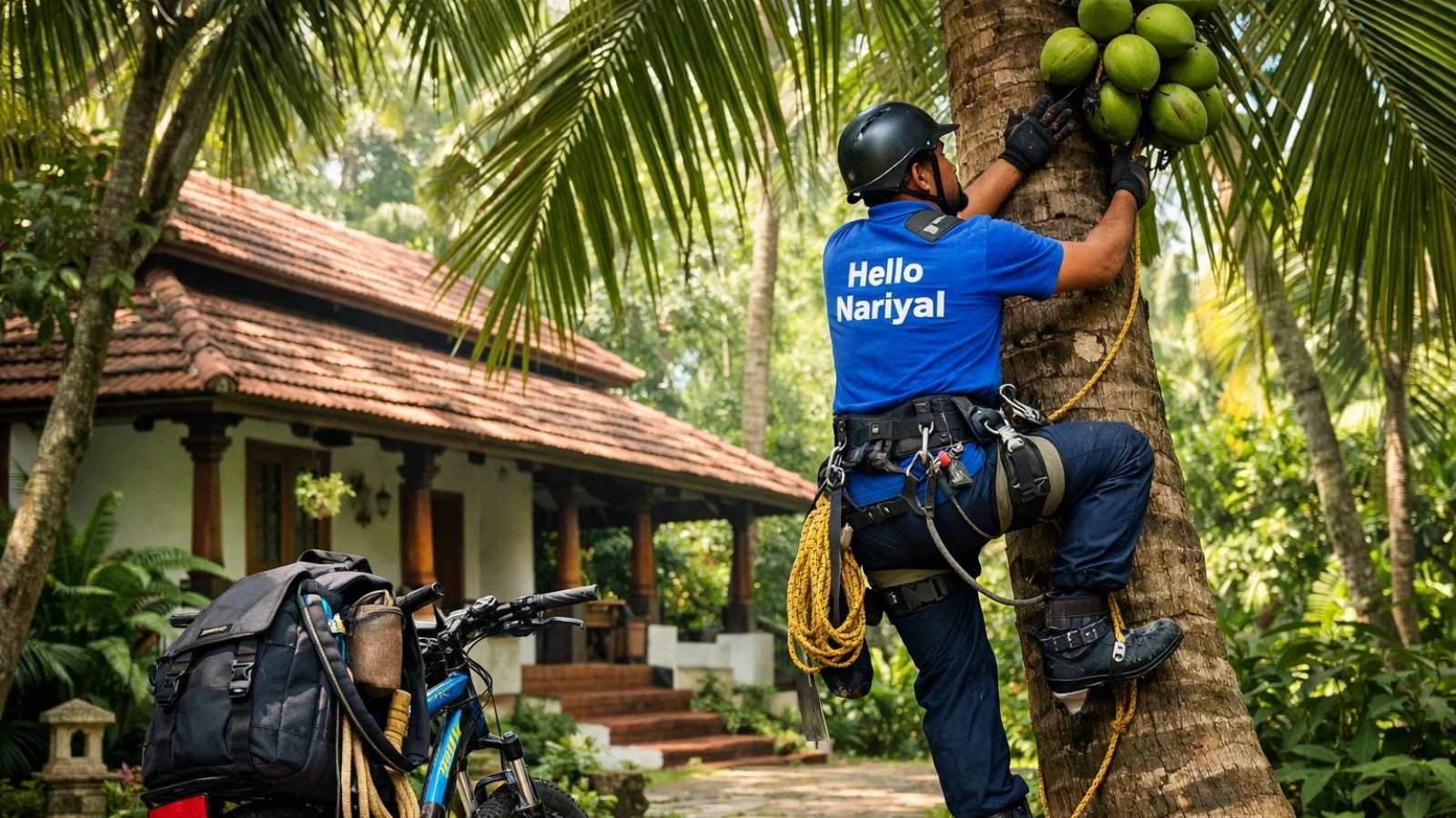 The video features a worker from the startup Hello Nariyal, who arrives on time with proper climbing equipment and quickly gets to work scaling tall coconut trees with ease. What stands out is not just the convenience, but how technology is being used to modernise a traditional job.