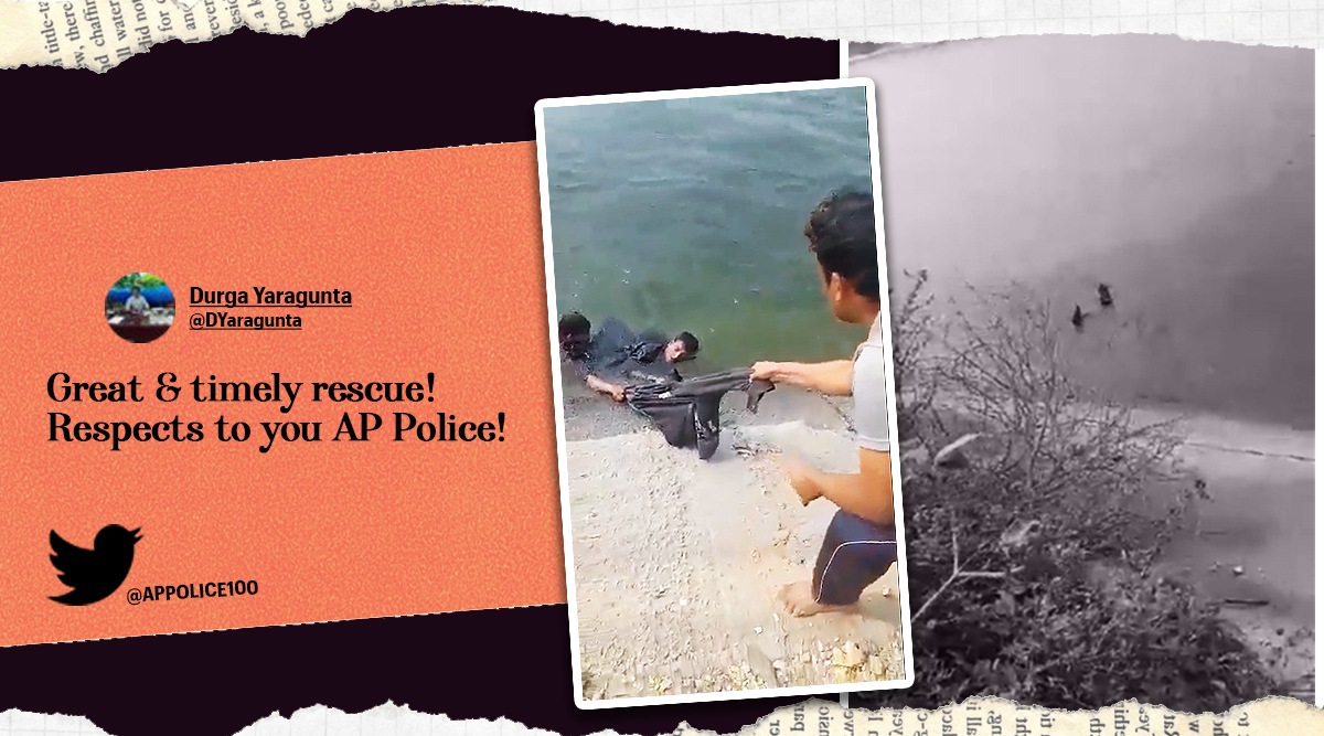 Andhra Pradesh Police tweeted, “#APPolice saves lives of 4 Youth: Four youngsters accidentally fell in #NagarjunaSagar right canal near Adigoppala. Praveen Kumar, Police Constable of #Durgi PS of @GntRuralPolice while moving on that path observed this & saved them with the help of civilians.”