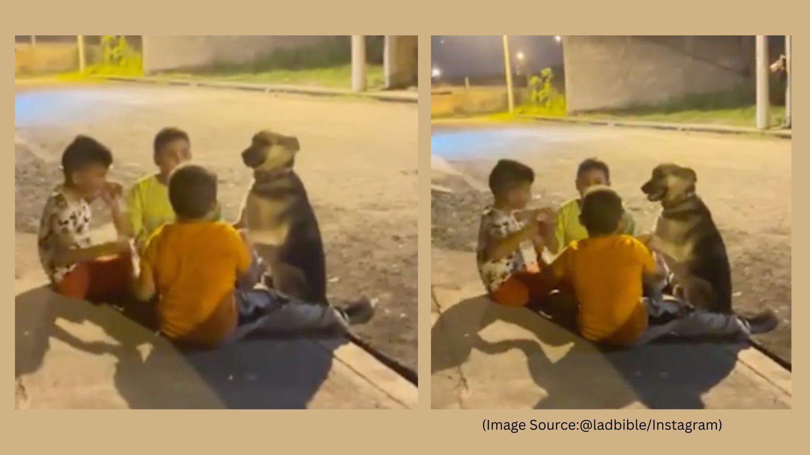 Three boys include a dog in their friend circle. (Image source: @ladbible/ Instagram)