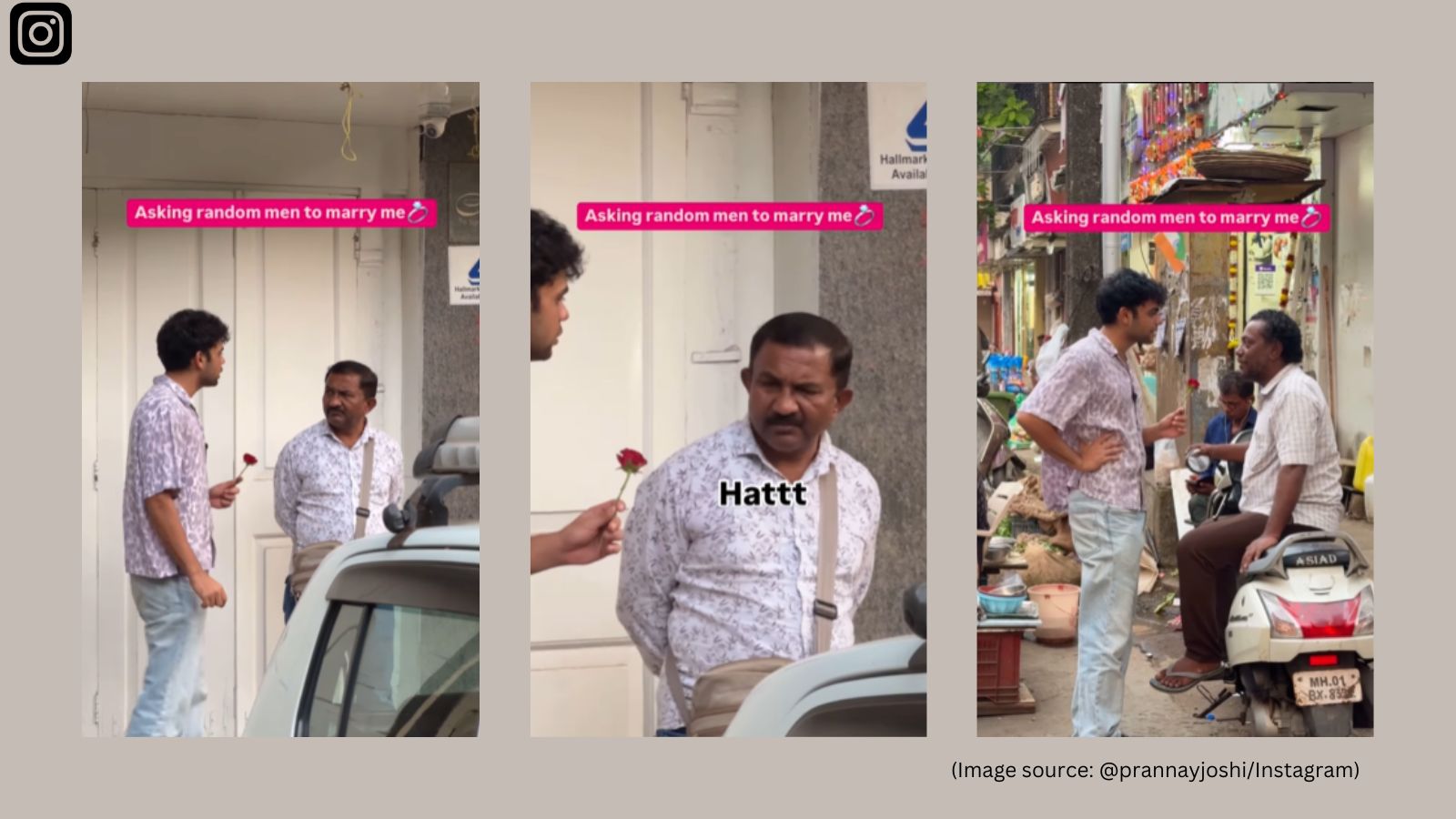 Joshi’s latest video reveals the raw responses of unsuspecting Indian men confronted with an unexpected marriage proposal from a stranger, a man at that. While some men recoil in shock, others fire back with sharp-tongued humour, and a few resort to colourful language that would make a sailor blush. One man’s blunt “Hatt” (go away) cuts through the tension, while others unleash expletives to escape the awkward encounter.