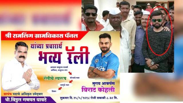 A candidate contesting for the post of Sarpanch of Ramalinga Gram Panchayat in Shirur promised voters that Indian cricket team captain Virat Kohli would attend an event. Word was spread that Kohli will attend the rally organised on Friday (May 25). With the star sportsman’s photo on the billboard along with Vitthal Ganpat Ghavate, who contested for the post of Sarpanch, the hoardings were put up in the entire state.