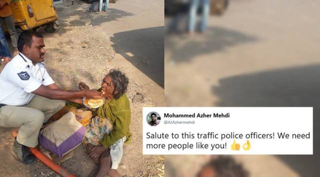 Our law enforcement officials often go beyond their way to help those in need or distress. One such heartwarming gesture is now going viral on social media. A photo of a Hyderabad traffic police officer feeding a homeless woman is doing rounds on Twitter with people praising the cop for his kind gesture.